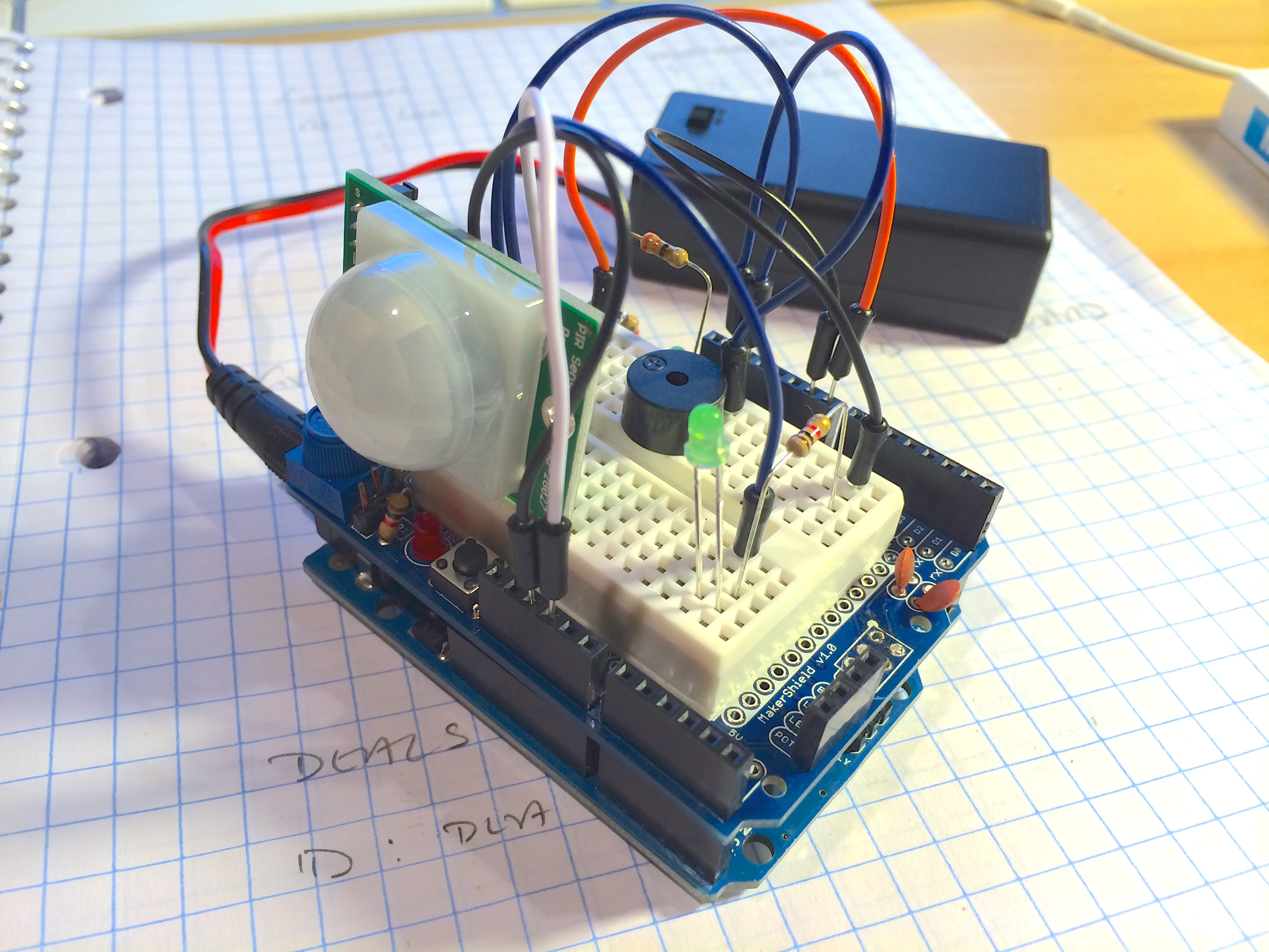 I had also purchased a passive infrared sensor and decided to make a simple motion detection alarm.