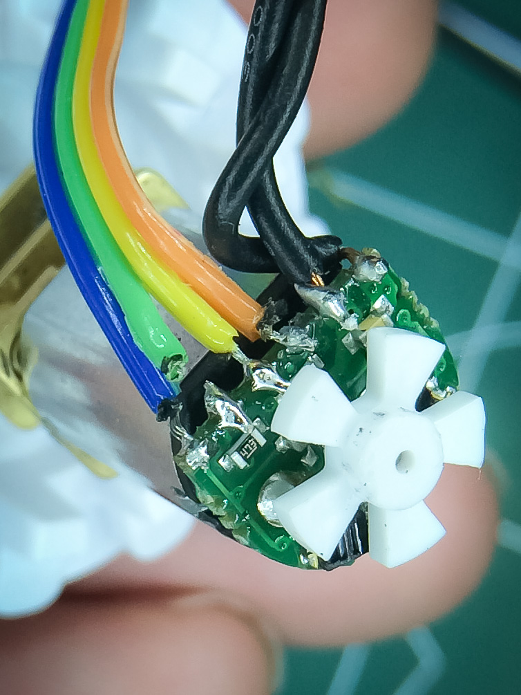 Everything looked like it was working but then one of the encoder channels started giving strange readings. Eventually I discovered the problem; a wire had snapped off at the solder joint.
