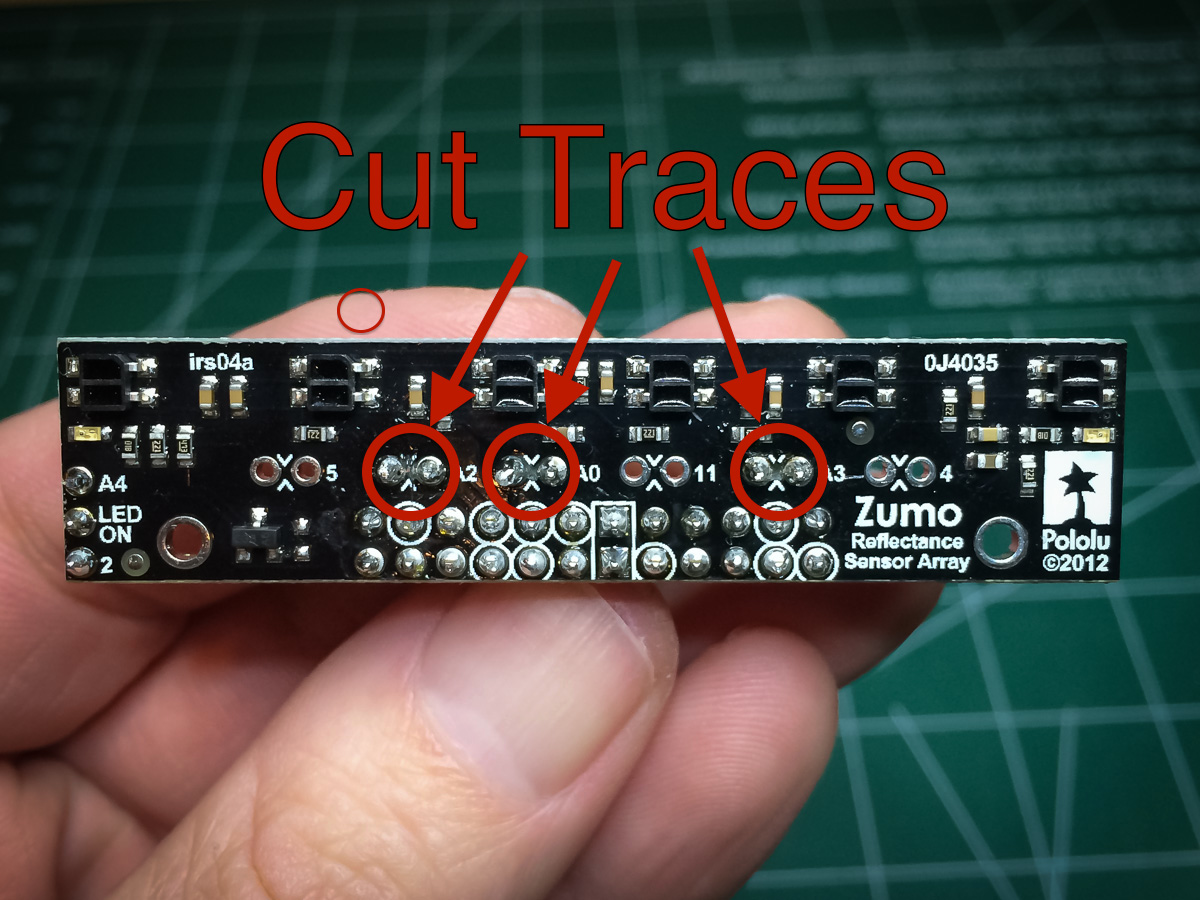 I could drop the sensor array but luckily its design has been really well thought out. Each sensor has a trace that can be cut to isolate the sensor from its assigned pin. You can solder in headers so you can reconnect them again using jumpers, which is what I did: