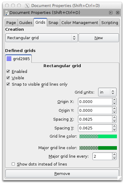 Would have liked to set the grid to every 1/32″ interval but Inkscape only allows values up to 4 decimal places to be entered: