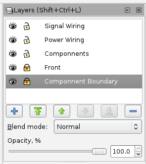 Then added two new layers, Signal Wiring and Power Wiring, renamed Art to Front and ordered all the layers thus: