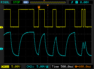 Here are some scope captures at different settings. I mainly used a square wave input as it is the most interesting to see and hear through the VCF.
