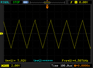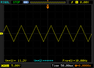 There is about a 1 Vpp difference between the triangle and square wave outputs.